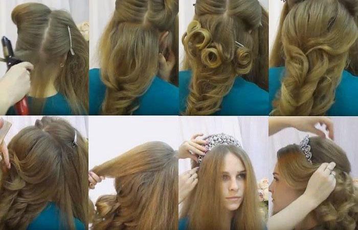 - Остальную шевелюру оставьте распущенной. При желании накрутите ее. Либо соберите все волосы в хвост, пышную косу.