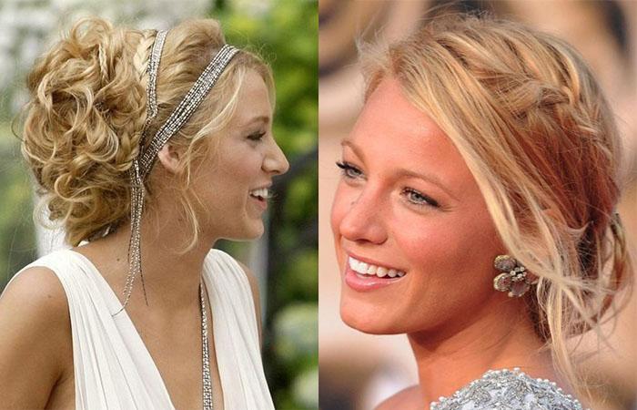 Многие знаменитости выбирают греческие прически для выхода в свет, посещения ответственных мероприятий. Уложенные таким способом волосы отлично сочетаются с изысканными вечерними или коктейльными платьями. Например, актриса Блейк Лайвли продемонстрировала 2 образа: один — по-настоящему роскошный: с плетением, красивыми аксессуарами. Второй — чуть более скромный, но от этого не менее элегантный.