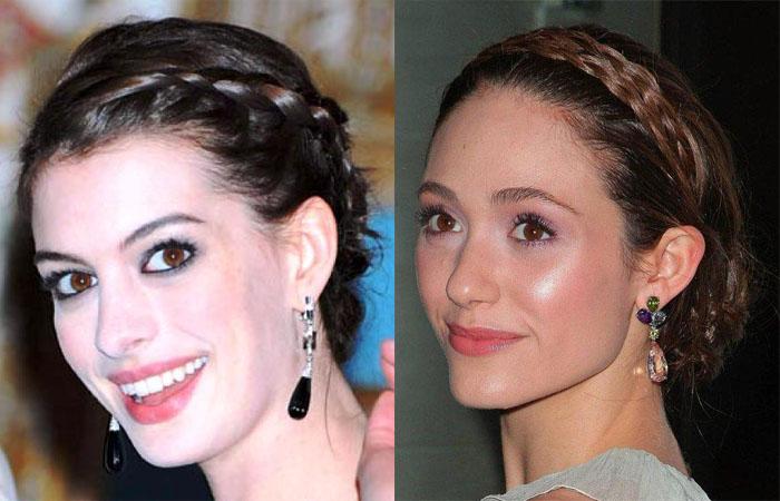 Варианты с косами выбрали Энн Хэтэуэй и ее коллега Эмми Россум.