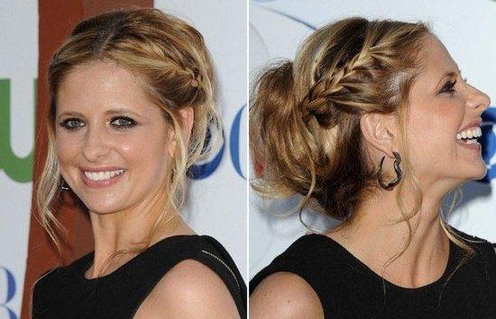 Сара Мишель Геллар тоже сделала почти классическую греческую укладку с прямым пробором.