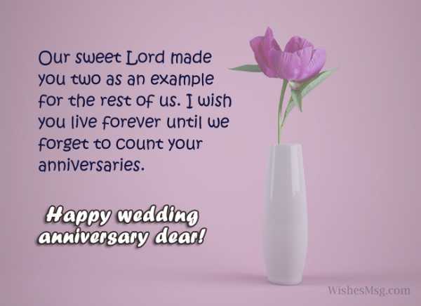 Вы вместе, рядом идете по жизни, рука об руку — это такое огромное счастье, которое за будничными хлопотами, семейными заботами порой не замечается и не ценится! Я вас поздравляю с годовщиной свадьбы и желаю, чтобы вы ценили ваше «МЫ», а ваш брак был счастливым и продлился многое годы! Терпения вам великого, смирения ангельского, теплого дружелюбия, готовности всегда прийти на помощь, оказать поддержку и, разумеется, крепкой, бесконечной, негасимой, нежной и преданной любви! Будьте счастливы каждую минуту, когда вы вместе!