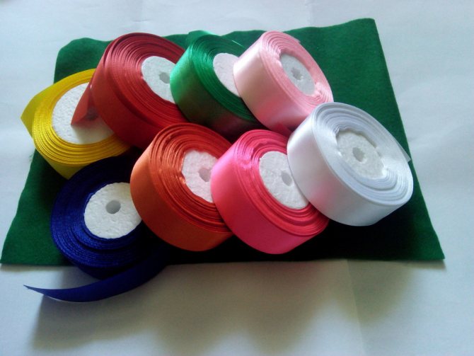- ленты необходимых расцветок, их длина и ширина зависит от размера будущих цветков;