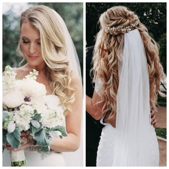 Считается, что длинные распущенные волосы быстрее, чем любая прическа теряют аккуратный внешний вид. Совместно с фатой они и вовсе выглядят удовлетворительно в течение пары часов. Выдержать долгое ночное веселье такой прическе не под силу.