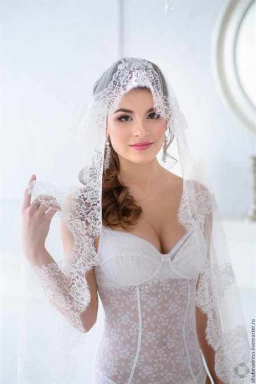 5) Просто накинуть фату сверху на голову (подходит для фаты «испанка»)
