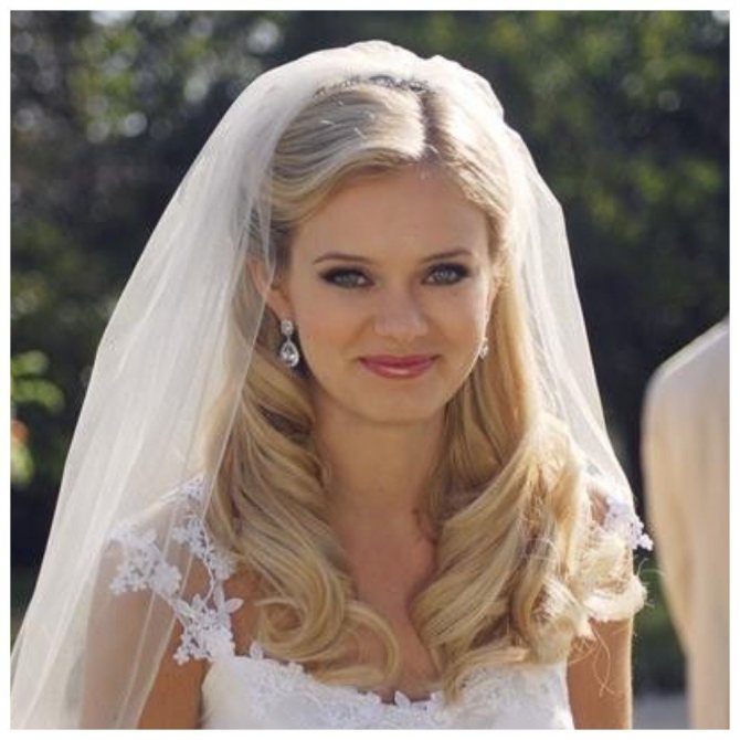 Крепление фаты к распущенным волосам — отдельная тема. Есть различные способы фиксации украшения. Некоторые из них считаются универсальными, другие подходят для прически с полураспущенными волосами, как мальвинка.