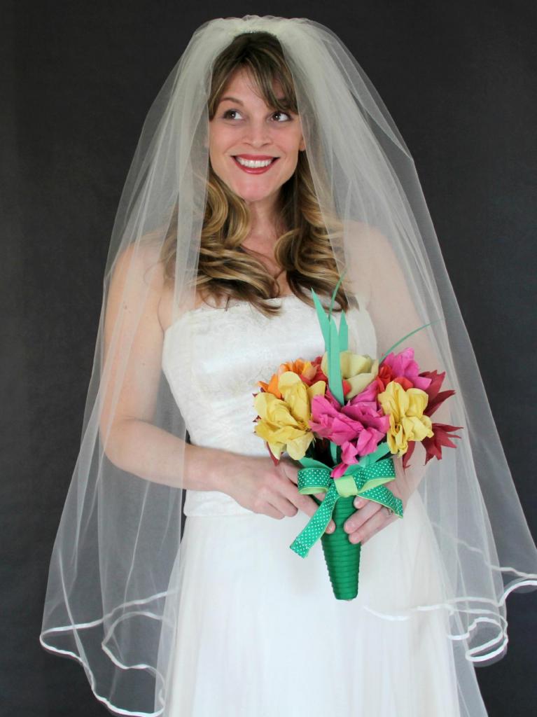 Традиционная длинная и пышная фата – атрибут свадьбы. Для девичника больше подойдет легкомысленно-короткая и яркая модель.