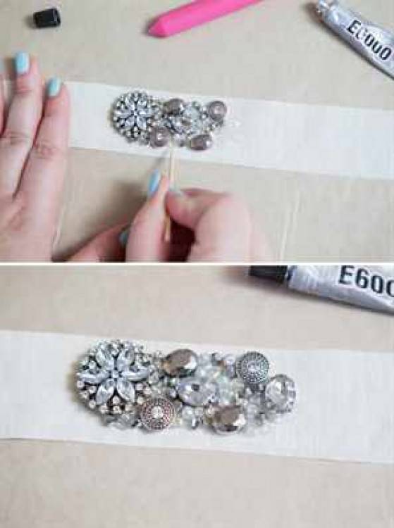6.После того, как детали приклеятся и клей засохнет можно примерить пояс, чтобы проверить его на прочность. Если некоторые стразы отвалились, нужно приклеить их заново.