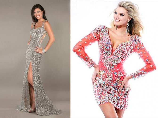 Выбирая вечернее платье со стразами, следует учитывать, подойдет ли оно по фигуре и цвету, поскольку в зависимости от длины и фасона, меняется стиль и образ. Короткие образцы добавляют игривость и кокетство. Платья в пол с разрезом — эталон стиля и женской привлекательности. Приталенные изделия акцентируют тонкую талию и стройный силуэт. Наряды в греческом стиле добавят романтики и свободы