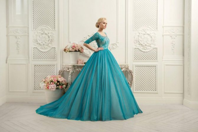 Весьма необычно выглядят платья, в которых пышные ткани вплетены перпендикулярно (об этом способе было рассказано выше). Но представьте, сколь оригинальна модель, в которой эти вплетения абсолютно разных цветов, как на сказочных картинках с драгоценными камнями.