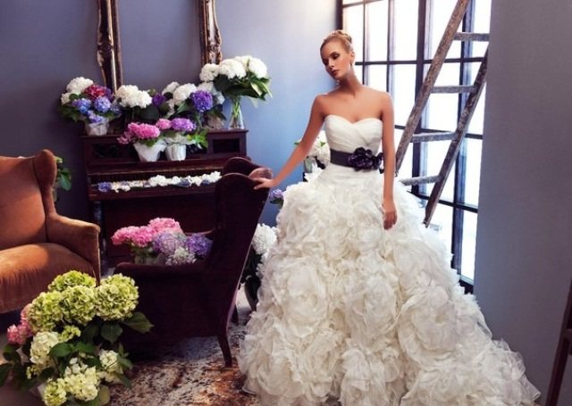 Именно такие одеяния наилучшим образом подчеркнут изящные черты лица или интересную прическу с вплетенными в нее живыми цветами. Да и в принципе вычурность не всегда выглядит уместно.