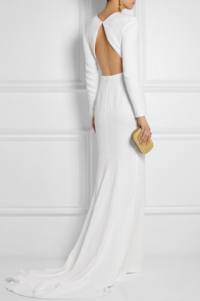 Прямой крой и использование одного-двух материалов сделают образ стильным. Гости переместят внимание на красоту движений, а не станут весь вечер всматриваться в броские узоры, чтобы понять, как сделано платье и куда идут линии.