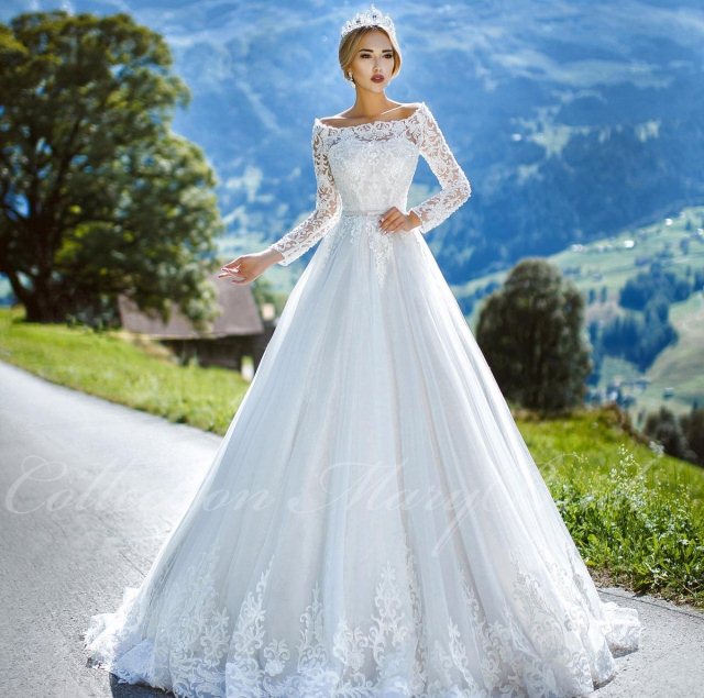 Иногда закрытые платья используются по религиозным соображениям. Например, мусульманские свадебные платья довольно востребованы в 2019 году. Но их не всегда приобретают религиозные люди – такие модели приходятся по вкусу невестам и других религиозных конфессий или вовсе неверующим девушкам.