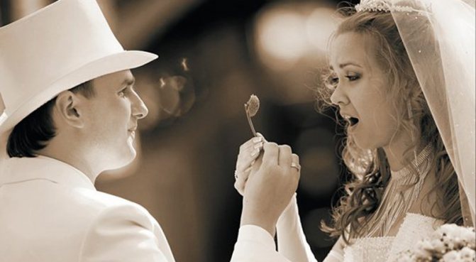 - Для сладкой семейной жизни непосредственно перед церемонией молодожены должны съесть напополам шоколадку.
