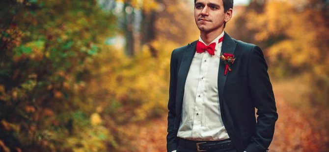 - Для свадебного костюма лучше выбрать галстук, а не бабочку. Считается, что она приведет к измене со стороны жениха.