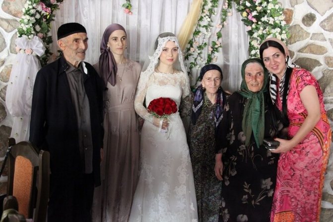 На Кавказе именно старики являются дорогими гостями на свадьбах. Невеста проводит с ними этот день в одном помещении, а жених и его друзья — в другом. Бывает так, что за целый день молодожены даже не видятся.