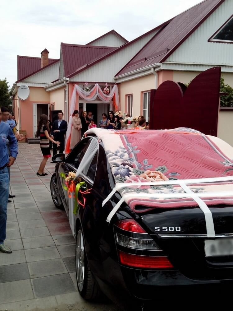Самый шикарный ковер украшает автомобиль невесты и жениха. Затем ковры уходят во владение владельцев машин.