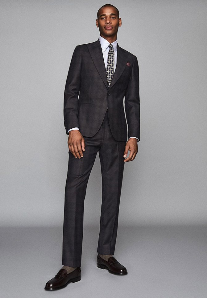 Давайте предположим, что вы начинаете с стандартного двубортного костюма цветом древесного угля или с чем-то более джазовым. Начните его преобразование с примерки обуви. Вместо Оксфордов наденьте джазовые лоферы, ботинки «челси» или туфли с контрастной подошвой.