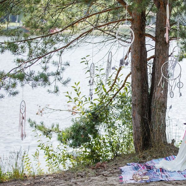 Естественные природные красоты очень удачно гармонируют с общим стилем свадьбы. Ничего больше для ее оформления придумывать не нужно. Живописные виды станут лучшим декором, а живая природа благотворно влияет на настроение гостей и виновников торжества. Именно на природе можно максимально расслабиться, зарядиться живой энергетикой, чтобы с новыми силами начать новую жизнь. Если праздник проводится в помещении, то его следует украсить букетами, кадками с маленькими деревцами, подойдут еловые и сосновые ветви.
