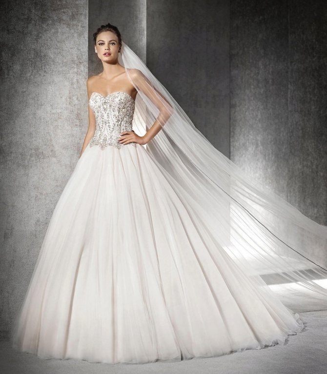 Эти модели можно назвать классикой. Естественно, они постоянно находятся в тренде, хоть и не относятся к категории ультрамодных новинок. Стильное решение – сочетание пышного низа с корсетом, украшенным сияющими декорирующими элементами.