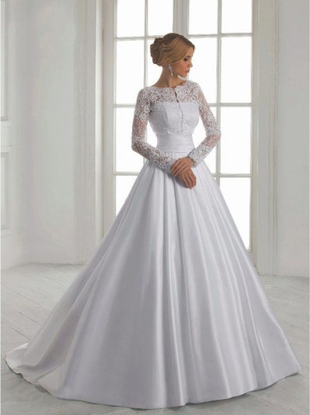В текущем сезоне особо приветствуется скромность. Поэтому модели для торжества с длинными рукавами, закрытым силуэтом будут вполне уместны. Подобные изделия можно сравнить с теми, которые носят восточные дамы. Правда, они отличаются наличием кружевных деталей и оригинальных элементов декора. За счет этого выглядят гораздо более празднично и изысканно.