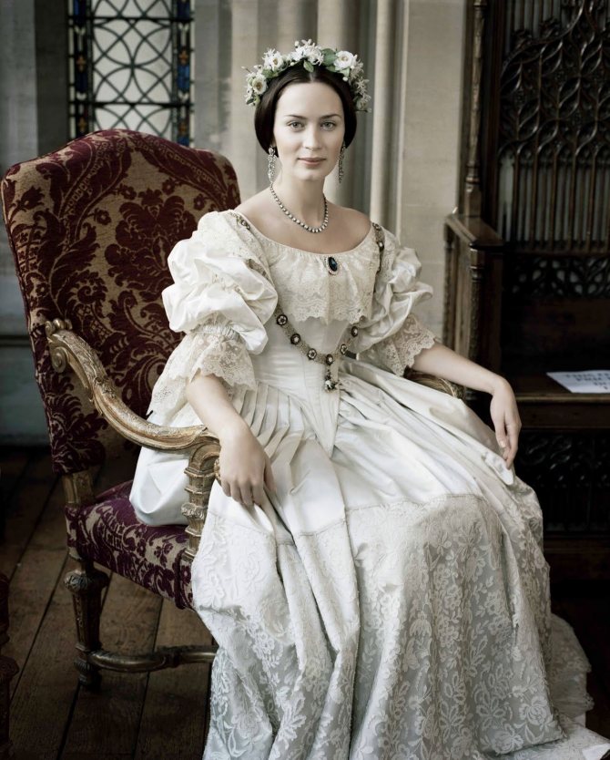 Самая известная новобрачная, которая выбрала белый цвет— королева Виктория. Её наряд был украшен кружевами, цветками апельсина и шлейфом 5,5 метров. После королевской свадьбы в 1849 году многие невесты стали предпочитать белый наряд и цветы апельсина — флердоранж в волосах.