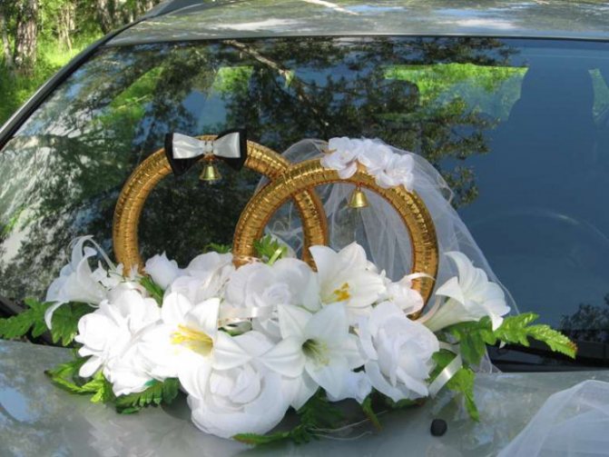 Выбор зависит от индивидуальных предпочтений молодоженов и, конечно, стиля проведения свадебного торжества. Именно кольца становятся главным украшением и своего рода визитной карточкой авто, в котором едут жених и невеста. Если по каким-то причинам приобрести такое украшение не представляется возможным, то молодые могут сделать такие кольца своими руками и закреплять их самостоятельно.
