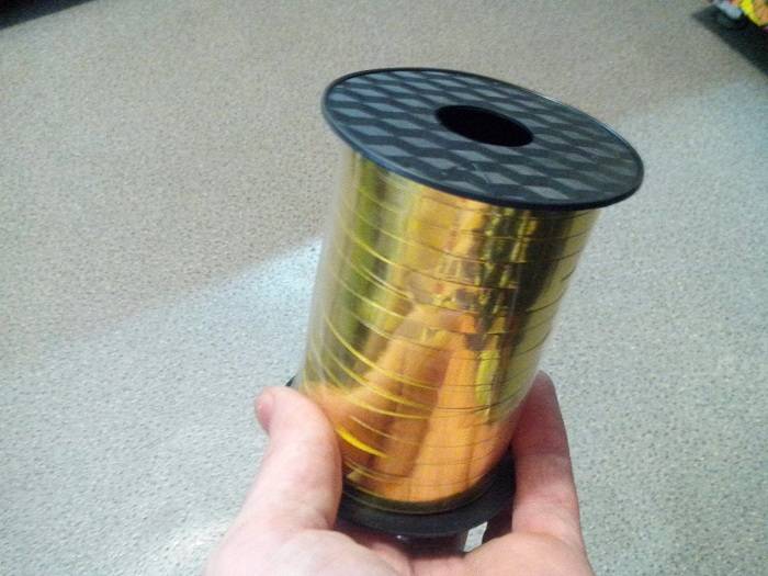 - атласная лента шириной 4 см и длиной 60 см. Этот элемент можно заменить золотой фольгой;