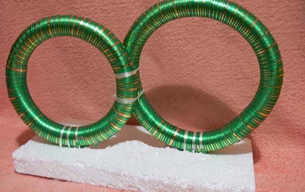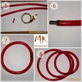 Итак, взяв в руки купленный вами накануне гофрированный шланг сантехнического предназначения, предстоит разобраться, как сделать кольца на машину именно из него. Сперва нужно шланг разрезать, но не на равные части, потому что одно колечко, как бы мужское, и должно быть больше, а второе, женское, наоборот, поменьше. Делайте размеры отрезков произвольными, но слишком большая разница погубить всю композицию, так что стоит проявить умеренность.