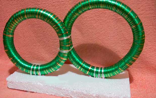 - Из ленты делают внешнюю обмотку колец. При создании каждого слоя обмотки концы ленты фиксируют клеем для надёжности.