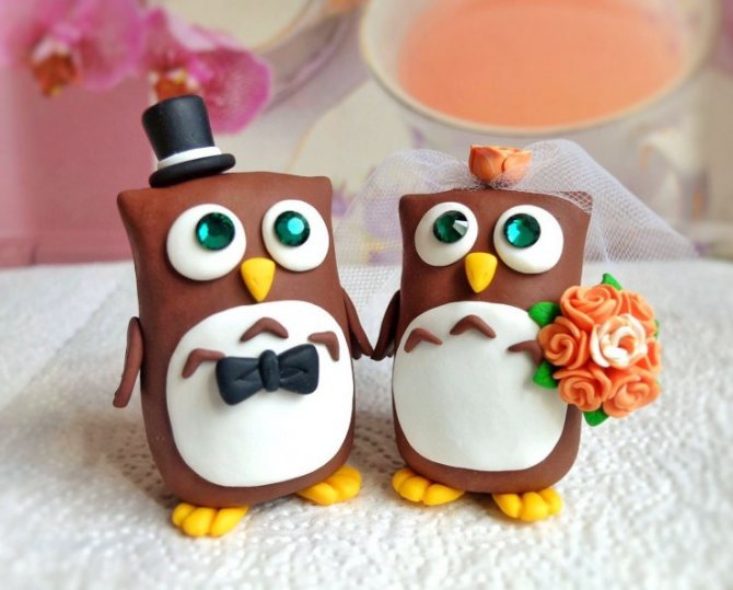 Статуэтки, возвышающиеся на свадебном торте, могут быть несъедобными. Такие изделия изготавливаются из глины, фарфора, керамики, пластмассы.