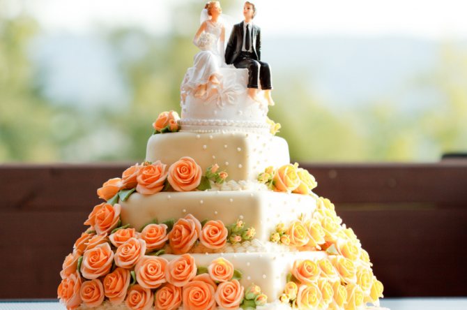 На вершине кулинарного шедевра обычно красуются различные фигурки, которые символизируют любовь.