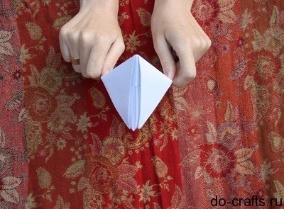 В результате получился треугольник, который нужно перевернуть и сложить противоположные стороны.
