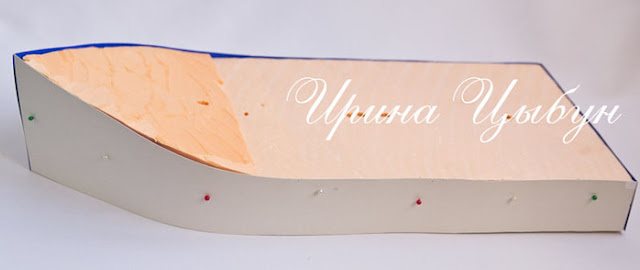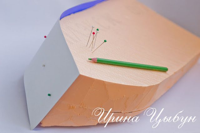С помощью обычных булавок прикрепите картон и вырежьте его по размерам, не забывая пометить правый и левый борт, чтобы знать, какая сторона лицевая, а какая — изнаночная.