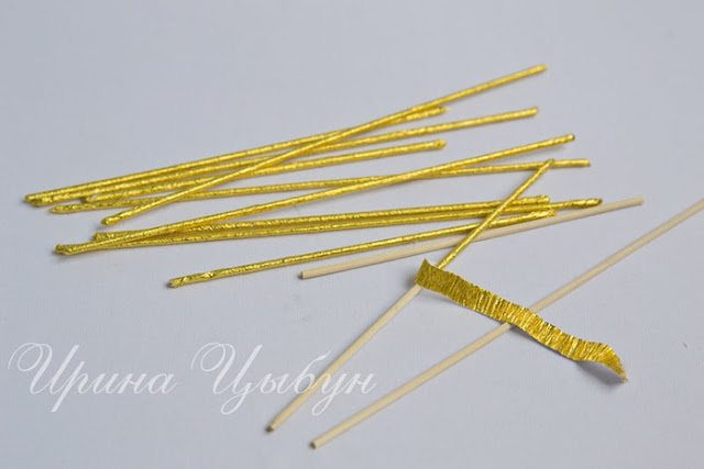 - золотистые бусины двух размеров и тонкая проволока для декоративных стоек;