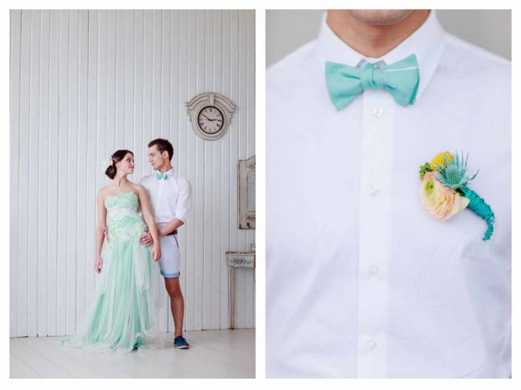 - Следует отказаться от белого цвета. Иначе на фотографиях будете сливаться с невестой в одно большое пятно.