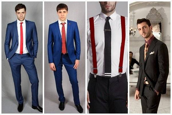 Несколько пар свидетелей обязательно согласовывают свои наряды. Они могут одеть одинаковые костюмы либо разные, но одного цвета. Свою индивидуальность они проявят в подборе аксессуаров: галстука, бабочки и шейного платка. Свидетелям не следует выбирать на свадьбу слишком экстравагантную и яркую одежду, чтобы не затмить образ жениха – главного героя торжества.