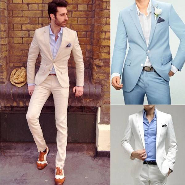 Простой классический костюм светлого тона – будет уместен во всех прочих случаях, его легко дополнить несколькими деталями до какого-то определенного стиля. Например, если свадьба будет в стиле гангстерской свадьбы, шляпа, соответствующая эпохе в сочетании с обычным костюмом, поможет сформировать нужный образ.