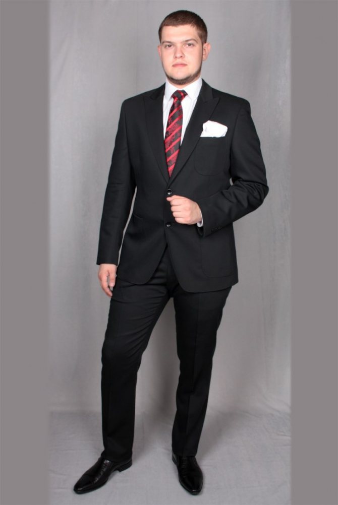 - Английский. Это наиболее строгий классический стиль. Пиджак приталенный, акцент делается на линии плеч. Модель имеет две шлицы на спинке. Брюки прямые, не слишком широкие. Этот вариант элегантен, он является лучшим для любого торжественного мероприятия. Но английский костюм имеет существенный недостаток, он отлично смотрится на стройных и высоких парнях и категорически не подходит полноватым мужчинам.