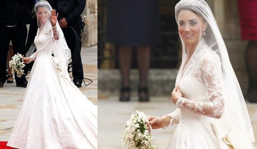 Еще одним эталоном подвенечной моды стал свадебный туалет герцогини Кембриджской Кейт Миддлтон. Ее белоснежное платье из шелка и кружева, фата с тиарой и умопомрачительный шлейф стали олицетворением идеального подвенечного образа принцессы. Примечательно, что в качестве узоров кружева использовались растительные символы королевства – роза, чертополох, нарцисс и трилистник.