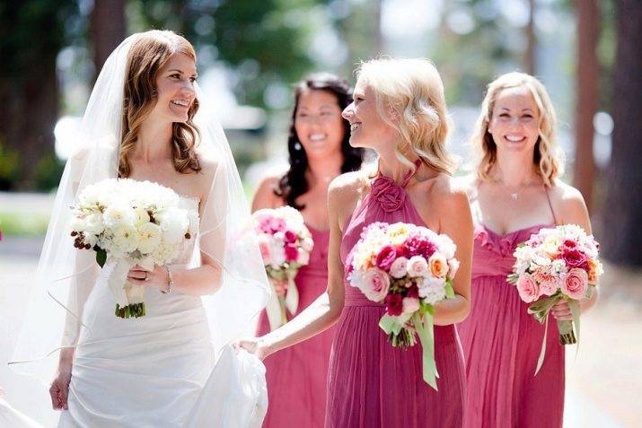 Конечно, гости на свадьбе стараются принарядиться и выглядеть гораздо лучше, чем в обычный день. Однако мы говорим не об этом. А о красивой западной традиции выделять подружек невесты и друзей жениха среди остальных гостей. Чаще всего для этого девушки заказывают платья одинаковых цветов и фасонов (иногда только цветов).