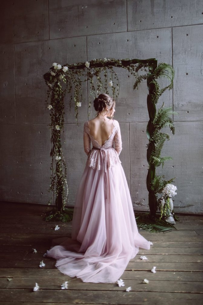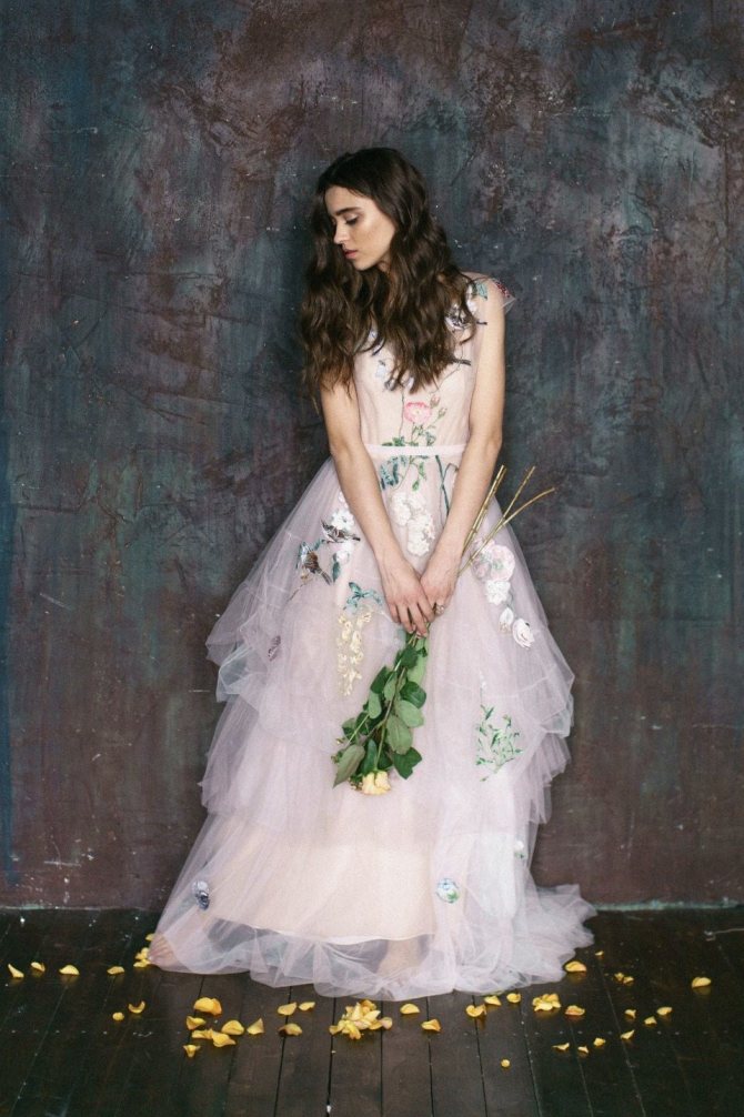 Идею использовать для свадьбы цветочные мотивы нельзя назвать новаторской, но тем не менее акварельные принты до сих пор в тренде. В этом сезоне на смену традиционным узорам на ткани приходит оригинальная 3D-вышивка. Такой вариант украшения платья добавляют ему фактуру и объем. А если цветочные аппликации кажутся тебе слишком смелым решением, можешь сделать акцент на деталях: например, добавить живые цветы в прическу.