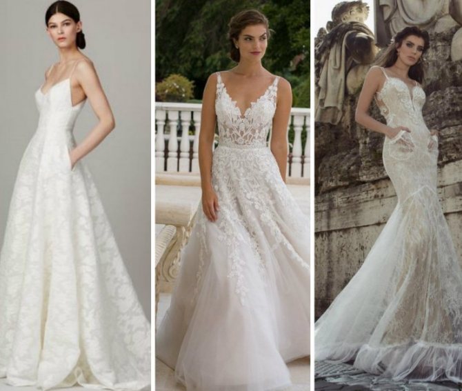 Что касается выбора материала для пошива платья, то актуальными будут довольно много вариантов. Среди них есть как более тонкие ткани, так и дорогие, благородные. Рекомендуем присмотреться к атласу, шелку, кружеву, жаккарду, шифону, а также органзе и матовой парче. Они смотрятся наиболее выигрышно среди всего разнообразия.
