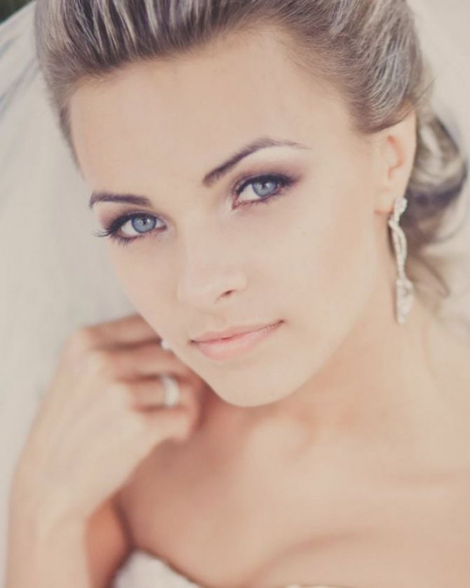 Дымчатые глаза для свадебного торжества считаются классическим вариантом, что годится для всех девушек. Отличительные особенности взгляда: