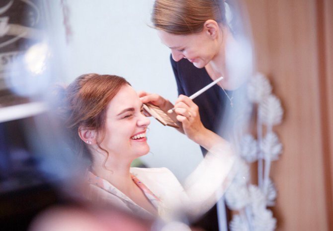 - Невеста хорошо знает особенности своей кожи, поэтому сможет, выгодно представить свои достоинства и замаскировать недостатки.
