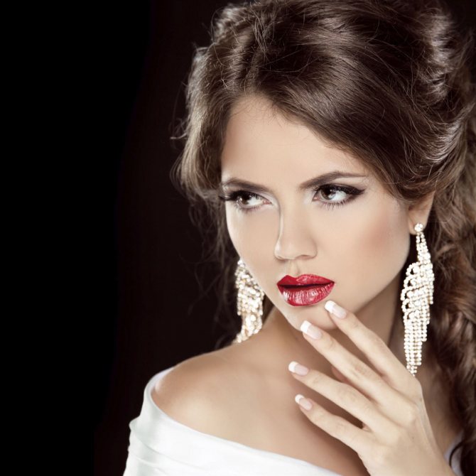 - Яркую помаду можно выбрать в том случае, если используются стрелки на веках.