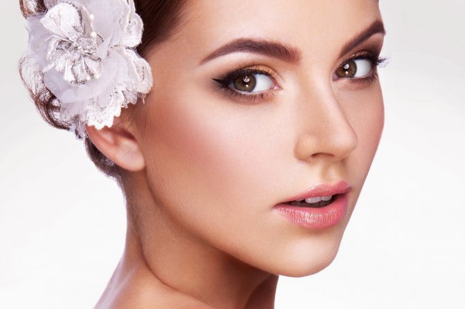 Совет! Чтобы макияж идеально лег на поверхность кожного покрова, нужно выполнить легкий пилинг, а также нанести на кожу увлажняющий крем. Свадебный вариант должен сочетать три вида макияжа: дневной, праздничный и фотографичный. Невеста должна смотреться элегантно и романтично, но при этом ее лицо не должно выглядеть блекло на фото.