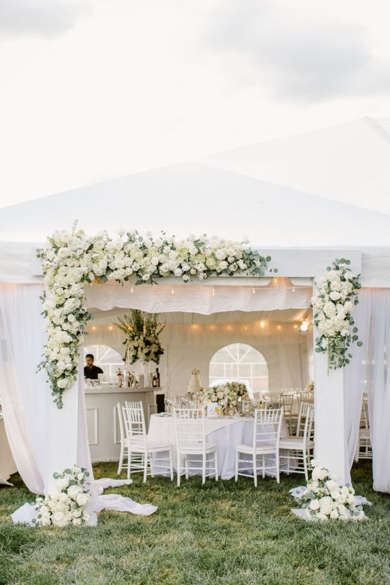Если вы знаете места с изобильно цветущими растениями и деревьями, поставить большой стол среди такой красоты будет отличным решением. Гости будут наслаждаться ароматом и не придется заморачиваться с фотозоной!