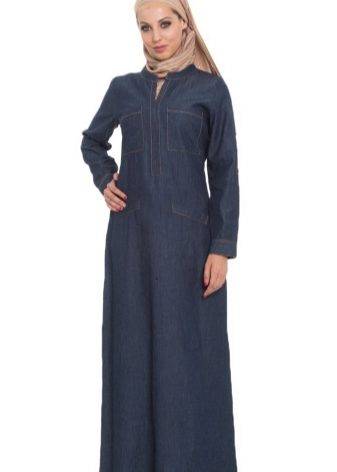 Мода на джинсу существует уже достаточно давно. В мусульманских коллекциях джинсовые платья все чаще появляются и покоряют своей стильной простотой, натуральностью и удобством. Эти модели прекрасно подходят для прохладной погоды, если выполнены из плотного материала. Летом же платья из тонкого денима просто незаменимы в жизни молодой мусульманки, они прекрасно впитывают влагу и позволяют коже дышать.