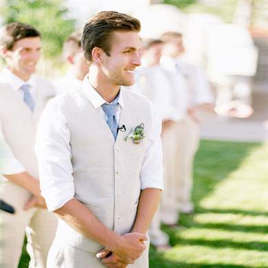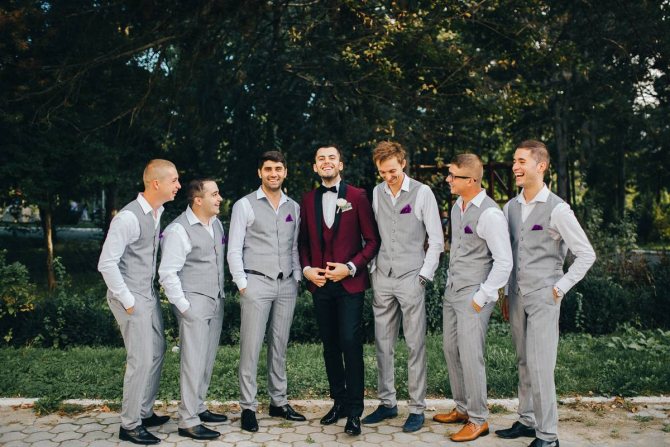Можно подобрать экстремальный в плане расцветки костюм – светлые брюки и яркий пиджак насыщенного оттенка. Это допущение работает в отношении неформальных свадеб, когда в костюмах приветствуется стиль кэжуал.