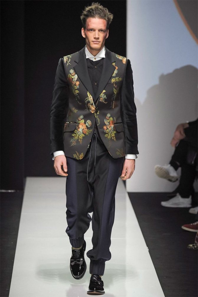 Цветочные принты давно перестали быть исключительно женской прерогативой. Сегодня они в обилии присутствуют в декоре мужской одежды. Не стоит быть слишком консервативными и думать, что розы и ромашки подходят исключительно женщинам. Напротив, правильно дозированный цветочный принт добавит луку экстравагантности, подчеркнет стиль и оригинальность. Флористические мотивы могут присутствовать на вороте рубашки, куртке, таким узором может быть дополнен даже строгий деловой костюм. Чего стоят только образы, представленные в коллекциях Dolce&Gabbana, Etro, AlexanderMcQueen и других именитых дизайнеров.